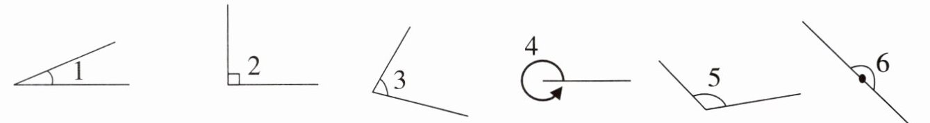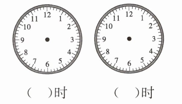 2. 在钟面上,时针和分针形成了一个角。随着指针的转动,角的大小也会发生改变。请你拨一拨,观察一下,几时整时,时针和分针会形成下面的角,并把它们画下来。