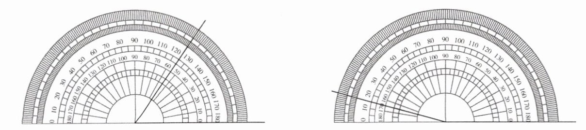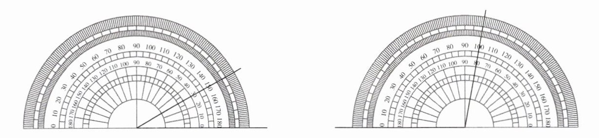 (2) 度量角的大小可以用量角器,它把一个半圆平均分成(
