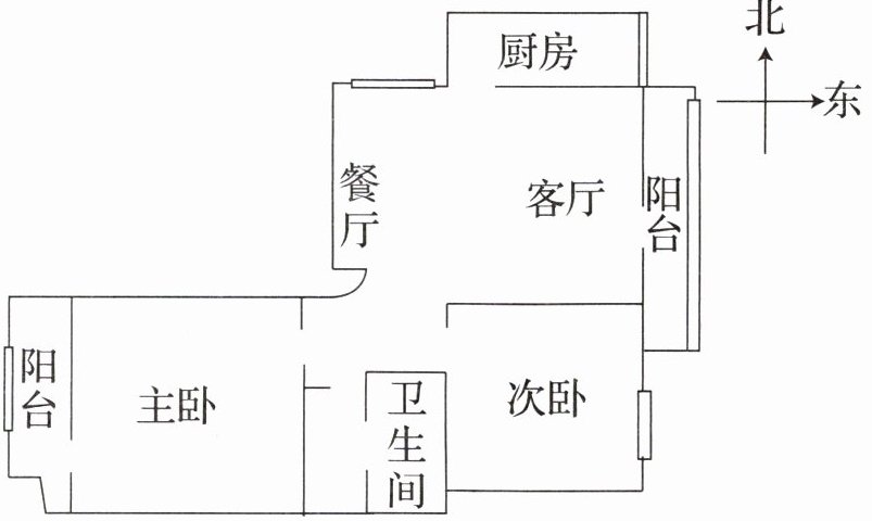 1. 下图是淘气新家的户型图,请你在图上分别找出一组互相平行的线段(用红笔描出)和一组互相垂直的线段(用蓝笔描出,并画上直角符号)。