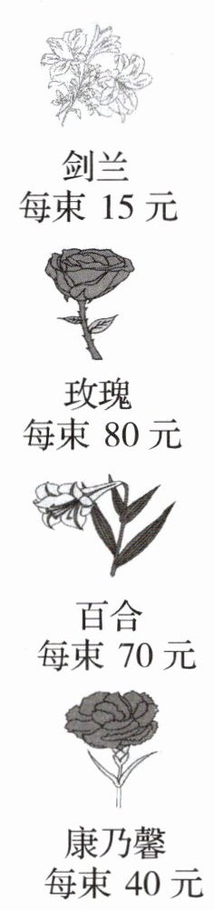 (3)小明带了 160 元,如果只买一种花,要正好用完,他可以买哪种花?买多少束?