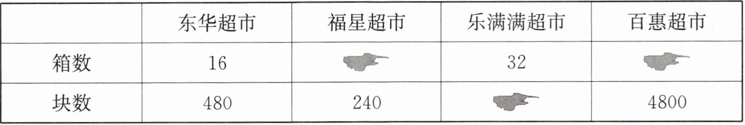 7. 肥皂批发部登记了几家超市上次进货时的信息,但不小心把一些数据弄脏了。