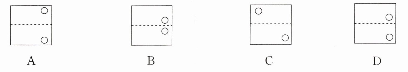 照左图,在一张对折了的纸上打一个小圆孔,展开后的样子是(