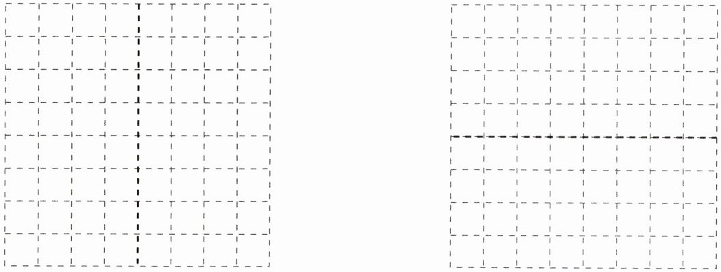 对于右边方格纸(以中间横线为对称轴):可以画一个等腰梯形,先在对称轴上方确定梯形的两个顶点,比如在对称轴上方第二行第二列和第二行第六列确定两个点,再在对称轴下方第二行第二列和第二行第六列的对称位置(即第六行第二列和第六行第六列)确定另外两个顶点,连接这四个点就得到一个以中间横线为对称轴的等腰梯形轴对称图形。
