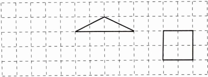 (1)①画出三角形向左平移4格后的图形。②画出正方形向上平移2格后的图形。