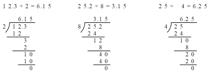 $12.3÷2$ $25.2÷8$ $25÷4$