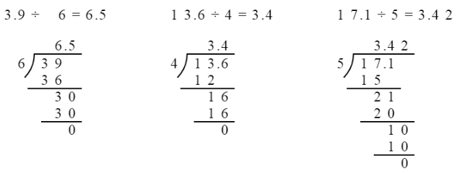 $39÷6$ $13.6÷4$ $17.1÷5$