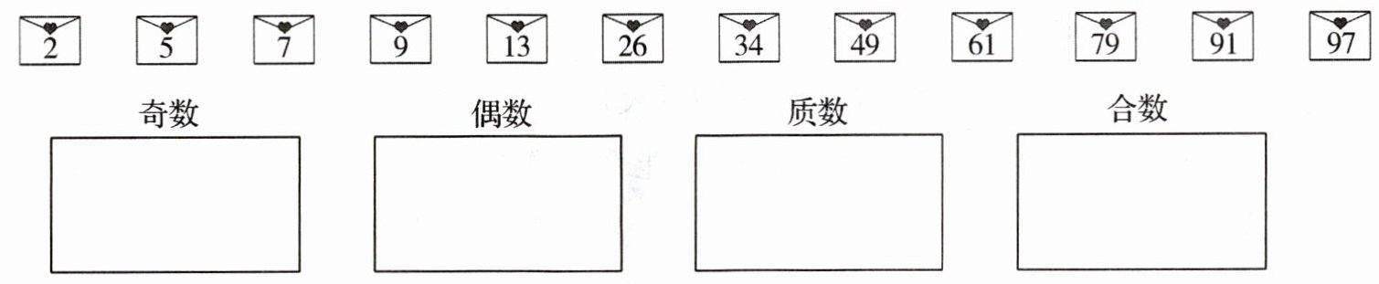 奇数:5,7,9,13,49,61,79,91,97 偶数:2,26,34 质数:2,5,7,13,61,79,97 合数:9,26,34,49,91