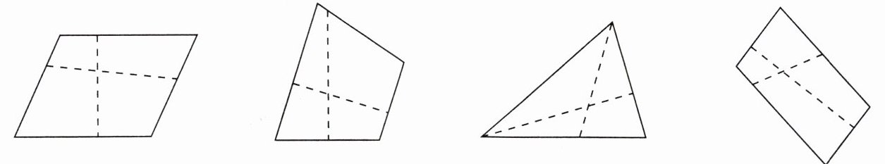 4. 下面的每个图形中分别有两组对应的底和高,请描上不同的颜色区分出来。
