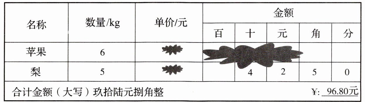 (2)(96.8-42.5)÷6=9.05(元) 冬冬的计算是不正确的,亮亮的计算是正确的。