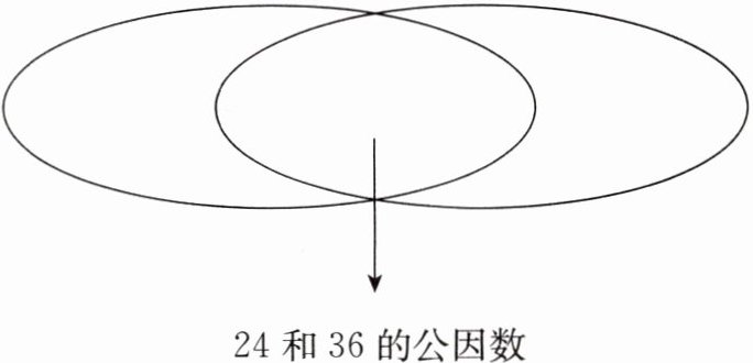 3. 把 24 和 36 的因数、公因数分别填在下面的圈内,再找出它们的最大公因数。