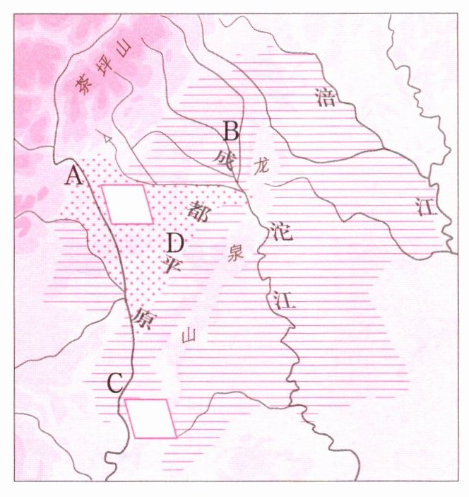 (2) 结合所学知识,都江堰在图 2 中的正确位置应是