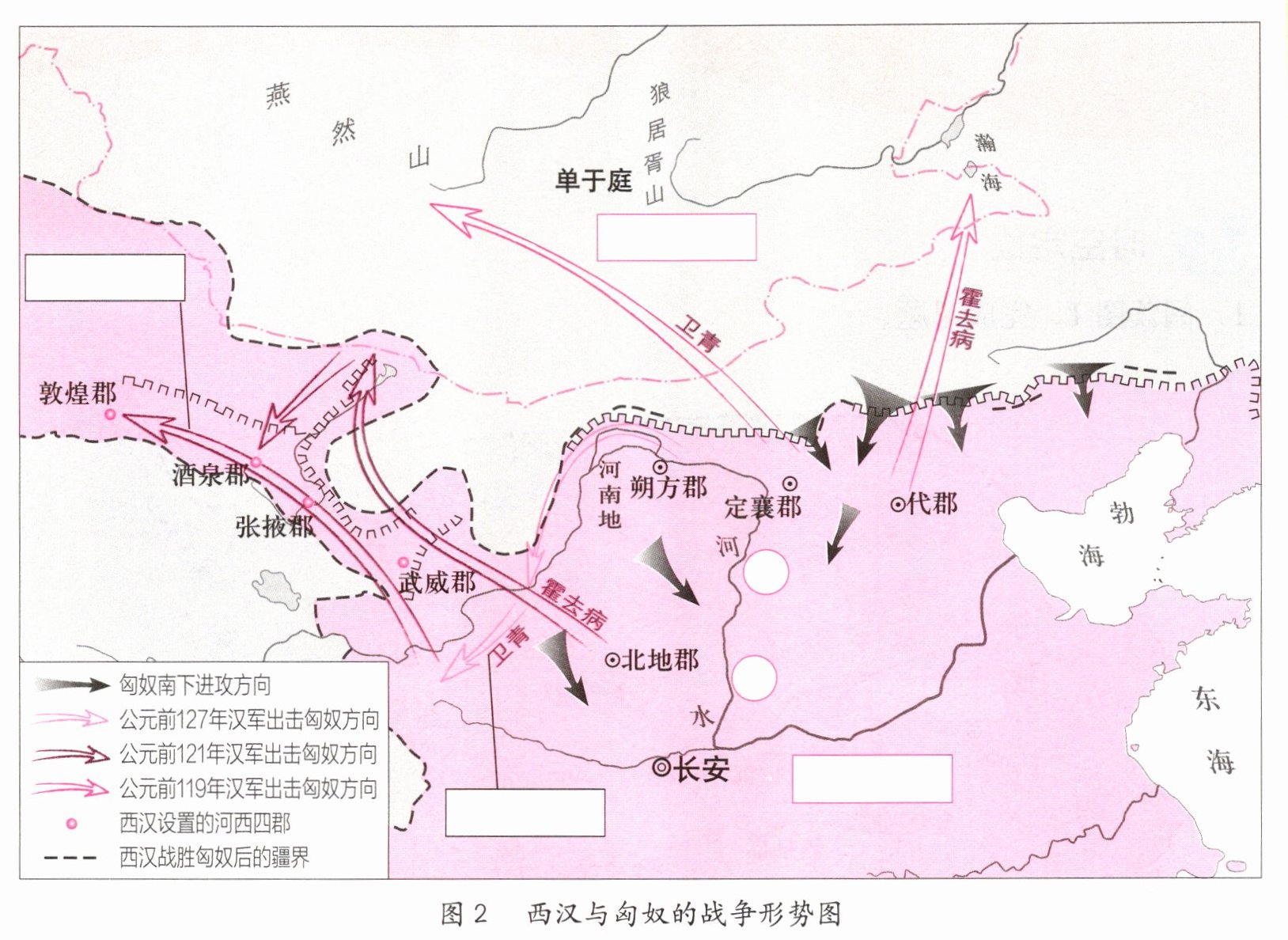(1) 读图1,在图中红框内填出西汉都城的名称,同时在红框中填出相应的政权名称。
