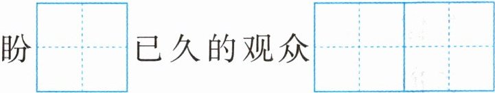 一场盛大的音乐会快开始了,盼$\overset{\mathrm{w}à\mathrm{n}\mathrm{g}}{□}已久的观众\overset{\mathrm{j}ǐ\mathrm{n}\mathrm{g}\mathrm{r}á\mathrm{n}}{□ □}$$\overset{\mathrm{y}ǒ\mathrm{u}\mathrm{x}ù}{□ □}$地入场。舞台中央,$\overset{\mathrm{m}ě\mathrm{i}\mathrm{m}\mathrm{i}à\mathrm{o}}{□ □}的\overset{\mathrm{q}í\mathrm{n}\mathrm{s}\mathrm{h}ē\mathrm{n}\mathrm{g}}{□ □}$不时传来……直$\overset{\mathrm{z}\mathrm{h}ì}{□}$结束,观众都沉醉其中。