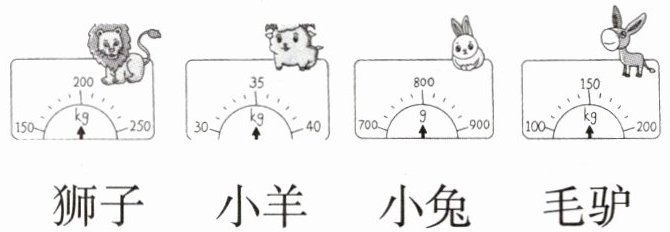 (1) 这些动物中 ( ) 最重,它的体重是 ( ) 千克。