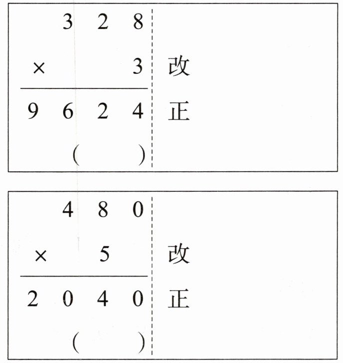 3. 下面的计算正确吗?正确的在( )里画“√”,错误的画“×”,并把错误的改正过来。