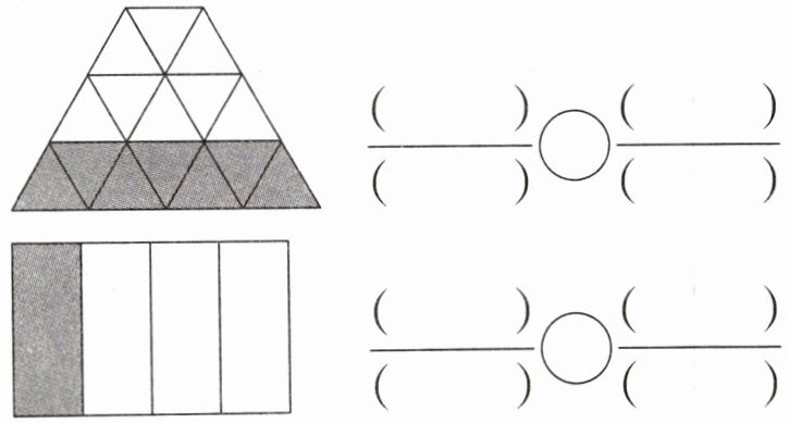 7. 想一想,先在下面的图中分别涂色表示出$\frac{1}{2}$、$\frac{2}{4}$、$\frac{4}{8}$,再比较它们的大小。