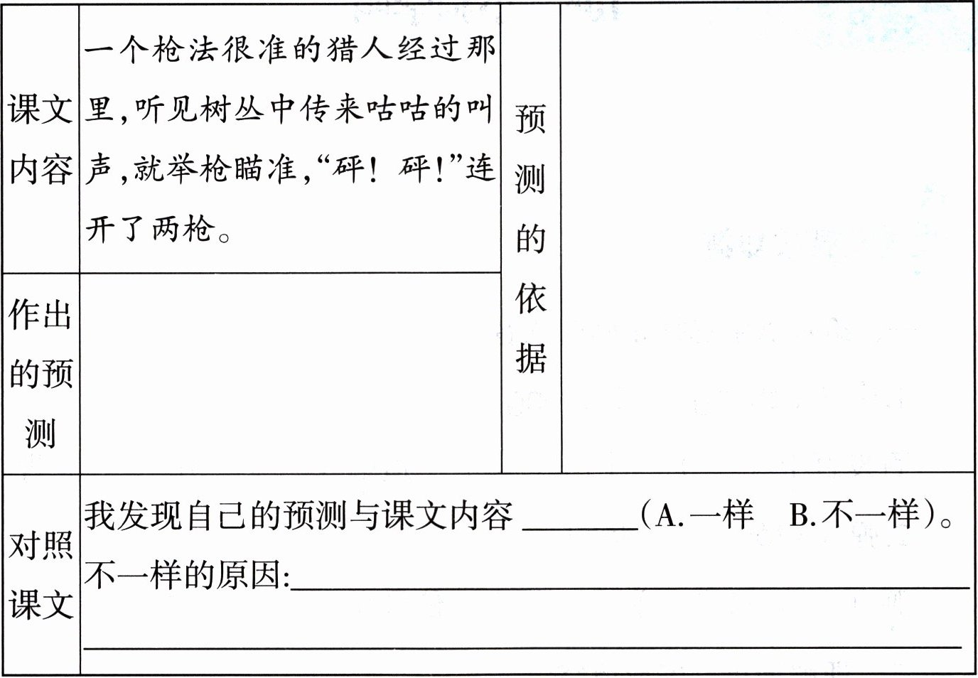 猎人射中了树丛中的动物;猎人枪法很准,听到叫声就开枪;B;课文中树丛里是不会叫的小狗在学杜鹃叫,猎人并没有射中任何动物。