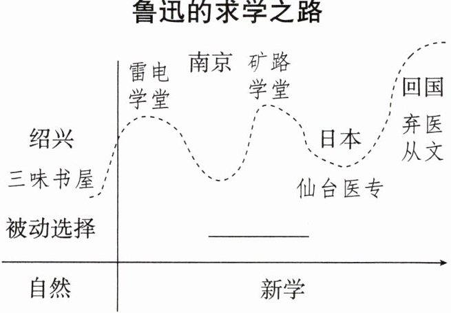 6.阅读《朝花夕拾》时,可以通过鲁迅先生的“求学之路”探索他的心路历程,请根据下面的思维导图,完成下列任务。(4 分)