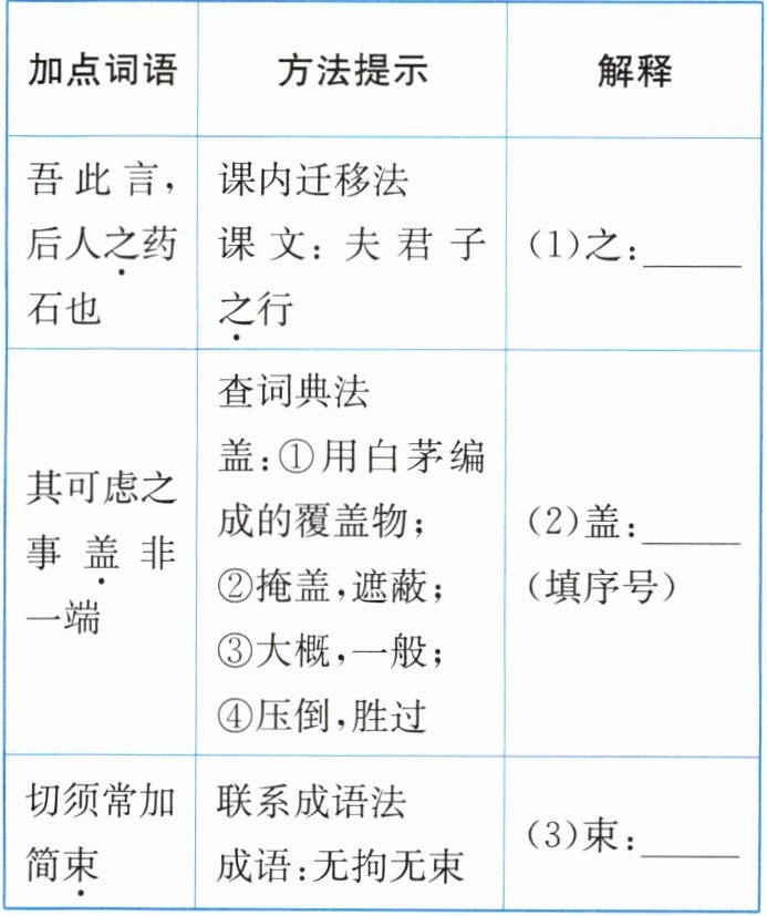 (2)根据查字典法可知,本句中“盖”的意思是“大概,一般”。