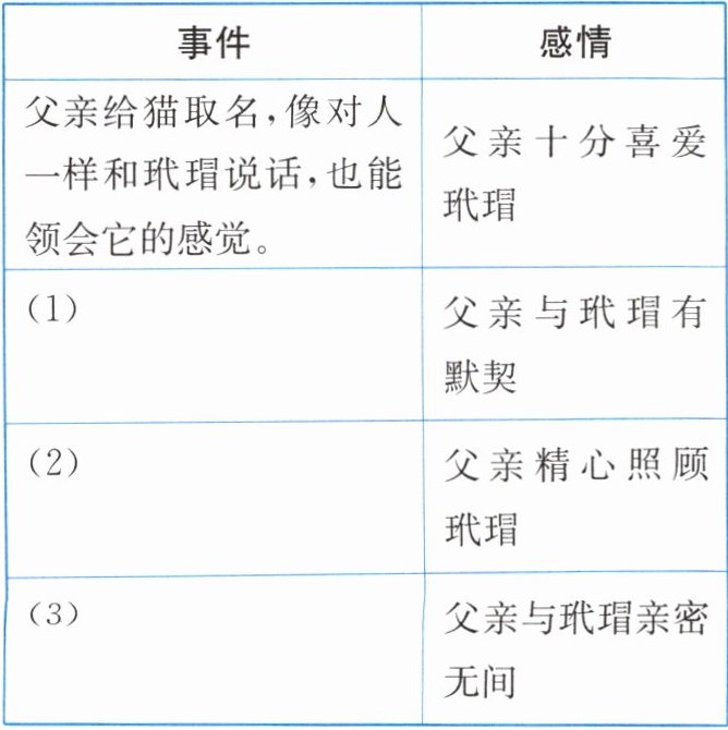 (1)结合第⑧段可知,父亲和玳瑁之间的默契体现在,父亲能敏感地觉察到玳瑁的惧怯,并作出安慰;