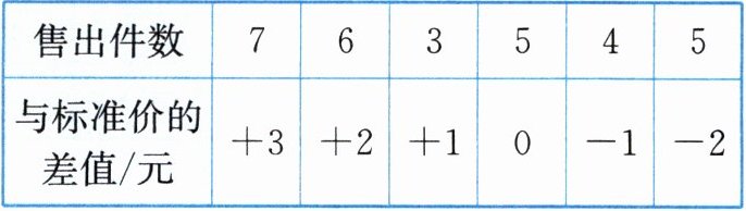 7. 某儿童服装店以每件 32 元的价格购进 30 件连衣裙,针对不同的顾客,30 件连衣裙的售价不完全相同,若以 47 元为标准,超过的钱数记为正,不足的钱数记为负,则记录的结果如下表所示.