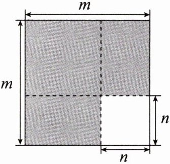 21. 如图,将边长为$ m $的正方形纸板沿虚线剪成两个小正方形和两个长方形,拿掉边长为$ n $的小正方形纸板后,将剩下的三块拼成新的长方形.