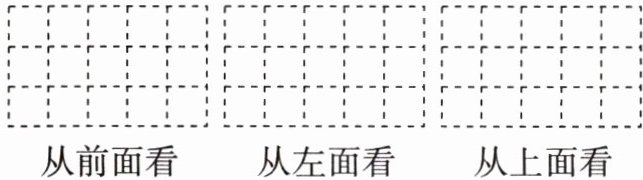 5. 由若干个完全相同的小正方体组成的一个立体图形如图所示,请在方格纸中用实线画出这个立体图形分别从前面、左面、上面观察得到的平面图形。