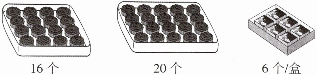 7. 张阿姨喜欢做美食,她在家做了两托盘月饼(如图)。一共能装几盒?