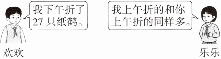 2. 欢欢今天上午和下午一共折了 50 只纸鹤,乐乐今天上午和下午一共折了 42 只纸鹤,乐乐下午折了多少只纸鹤?