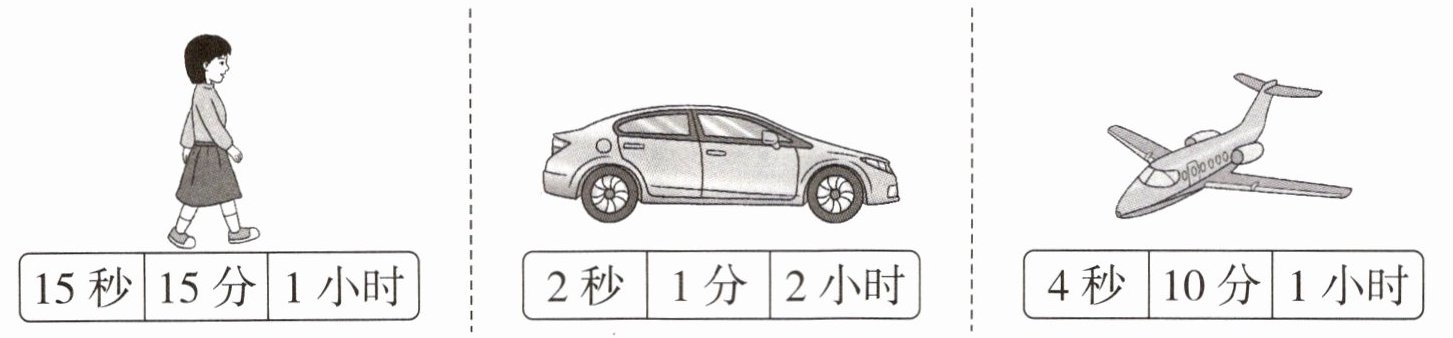 4. 用下面的出行方式行1千米需要多长时间?圈出合适的答案。