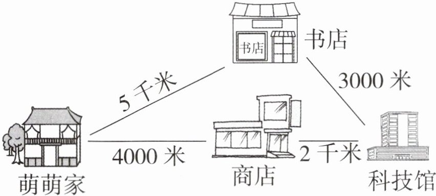 (2)萌萌从家出发去科技馆,最少要走多少千米?