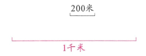 (2)如果下面的线段表示200米,那么请你画出表示1千米长的线段。