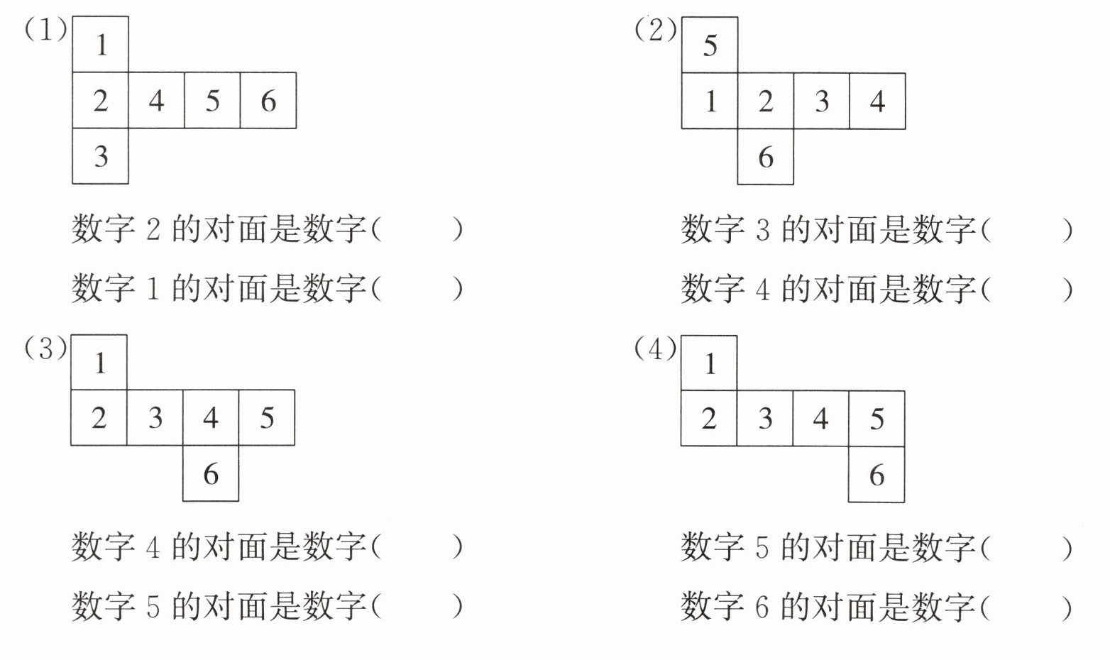 5. 把图形折成正方体,想一想,填一填。
