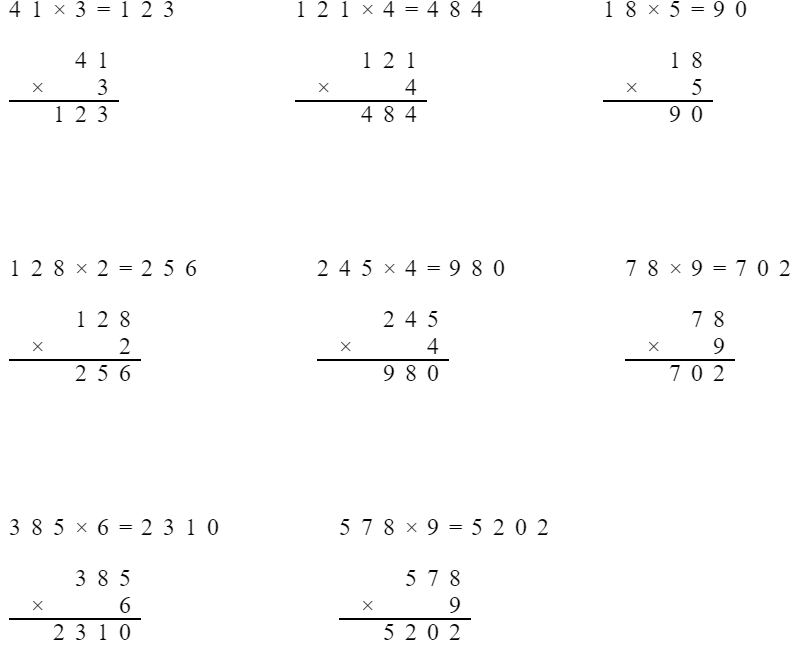 $41×3= $ $121×4= $ $18×5= $ $128×2= $