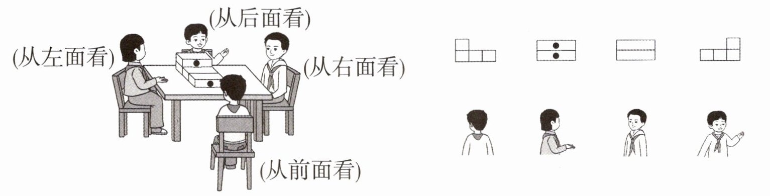 2. 下面的图形分别是哪名同学看到的?连一连。