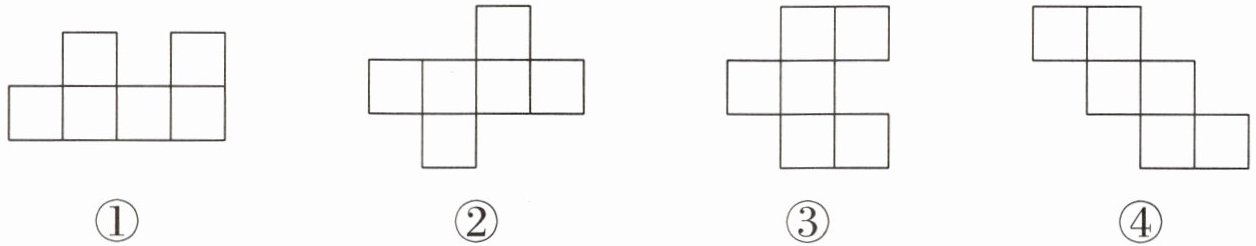 5. 下面的图形能折成正方体吗?想一想,把相应的序号填在括号里。