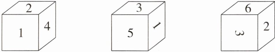 4. 一个正方体木块的六个面分别写着1~6这六个不同的数字,下面是小玲从三个方向看到的图形。