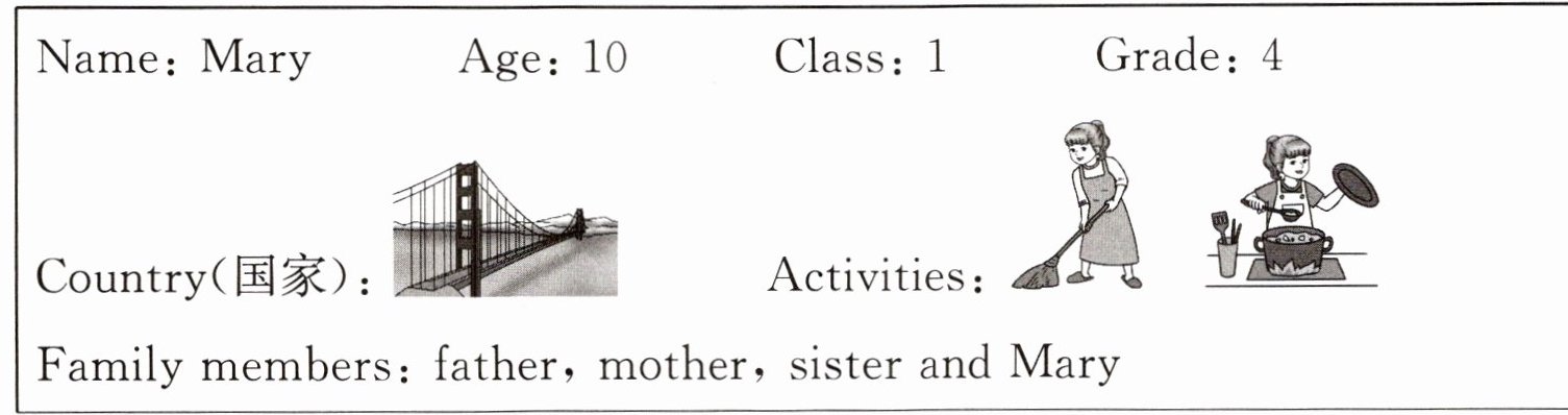 | Name: Mary | Age: 10 | Class: 1 | Grade: 4 |