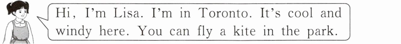 Hi, I'm Lisa. I'm in Toronto. It's cool and windy here. You can fly a kite in the park.