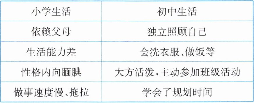 2. 下面是一名七年级学生对自己小学生活和初中生活的比较: