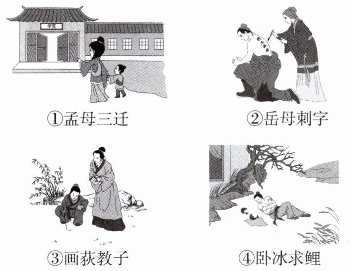 4.A 解析:本题考查传承优良家风。习近平总书记的讲话涉及家风的重要性。孟母三迁、岳母刺字、画荻教子都体现了优良家风,①②③符合题意;卧冰求鲤涉及孝敬父母,④与题意不符。故选A项。