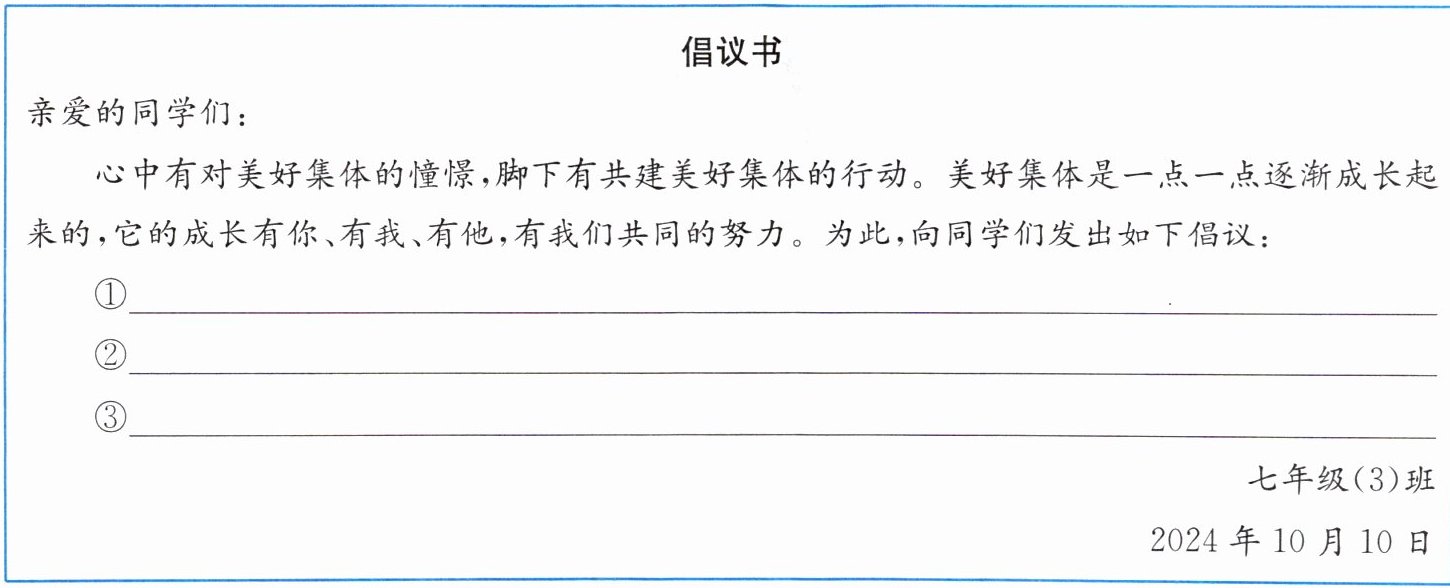 心中有对美好集体的憧憬,脚下有共建美好集体的行动。美好集体是一点一点逐渐成长起来的,它的成长有你、有我、有他,有我们共同的努力。为此,向同学们发出如下倡议: