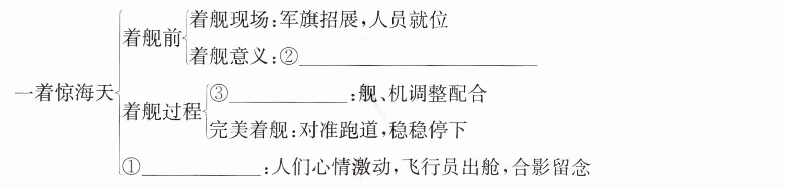 着舰过程⎧⎪⎪⎪⎨⎪⎪⎪⎩③______:舰、机调整配合完美着舰:对准跑道,稳稳停下