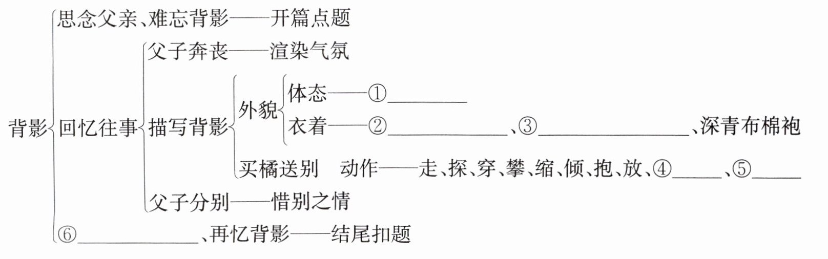 示例:①肥胖 ②黑布小帽 ③黑布大马褂 ④爬 ⑤扑 ⑥怀念父亲