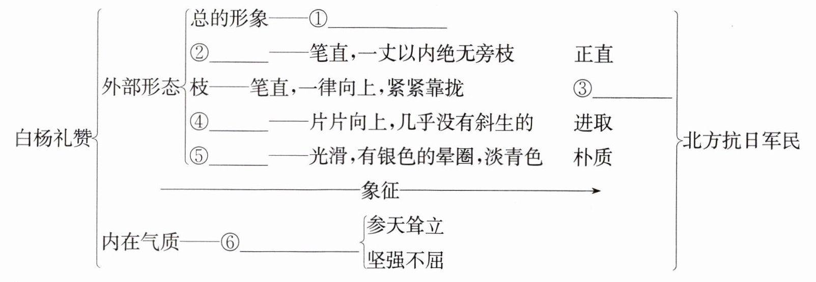 示例:①力争上游 ②干 ③团结 ④叶⑤皮 ⑥倔强挺立