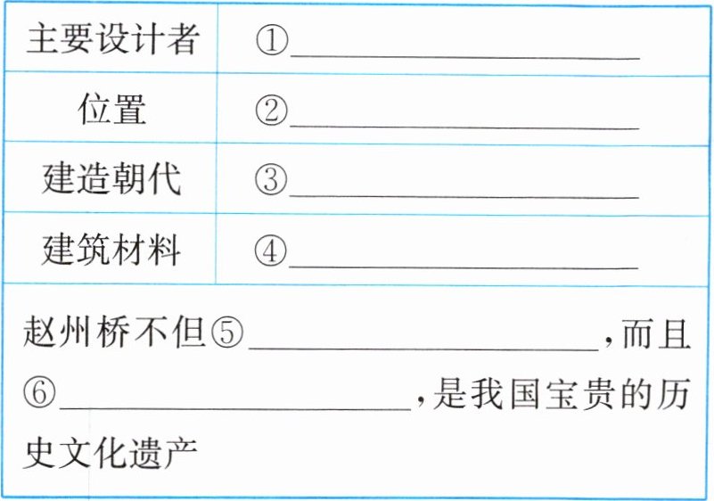 |赵州桥不但⑤____,而且⑥____,是我国宝贵的历史文化遗产| |