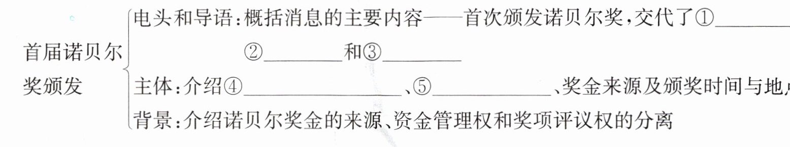 - 主体:介绍④____、⑤____、奖金来源及颁奖时间与地点