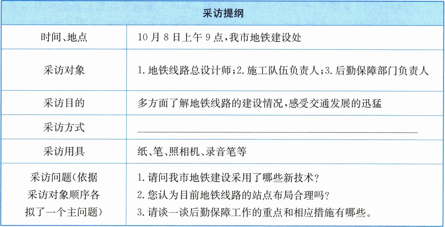 3. 学校准备开展“新闻采访与写作”专题学习活动。你所在的班级准备以“我市地铁线路建设”为报道题材,开展对地铁建设工作人员的采访活动,请你参加。