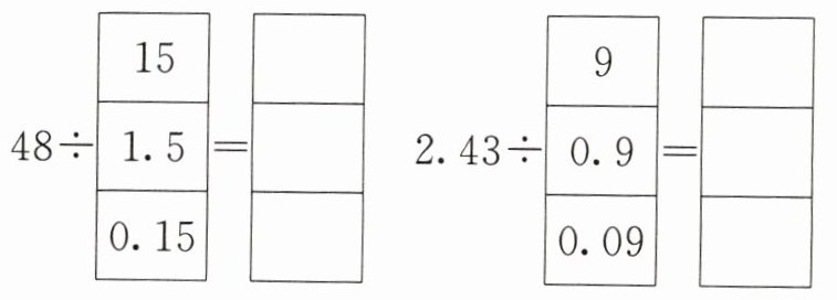 $48÷\begin{array}{|c|}\hline15\\\hline1.5\\\hline0.15\\\hline\end{array}\\\hline =\begin{array}{|c|}\\\hline\\\hline\\\hline\end{array}\\\hline =\begin{array}{|c|}\\\hline\\\hline\\\hline $