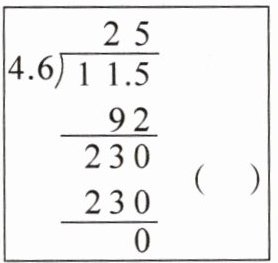 \begin{array}{r}25\\4.6\enclose{longdiv}{11.5}\\\underline{92}\\230\\\underline{230}\\0\end{array} $